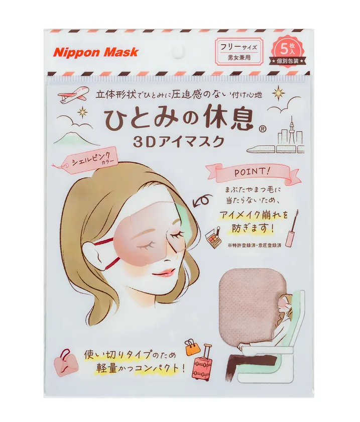 手軽で快適な着け心地の新タイプのアイマスクを、飛行機やバスでの長距離移動時や不眠対策などに是非ご利用ください。