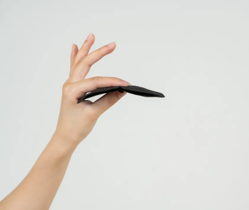 広げると立体型になり、瞬きできるほどの空間を実現するアイマスクの形状は自社のオリジナルで特許取得済みです。