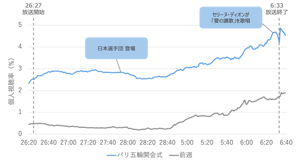 パリオリンピック開会式の視聴率推移