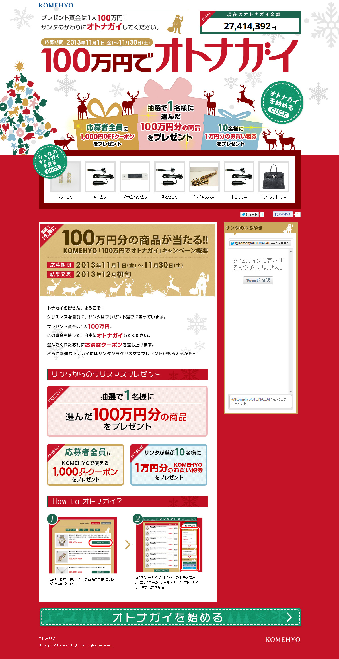 100万円分の商品が当たるかも?!KOMEHYOからのクリスマスプレゼント 15,000点以上の商品から自分の欲しいものを 「オトナガイ」できるキャンペーン開催中!