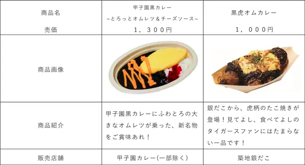 今年は”タイガースカラー”をテーマに、各店舗が工夫を凝らしたタイガースファンにはたまらないグルメを期間限定で販売!この機会にぜひご賞味ください。