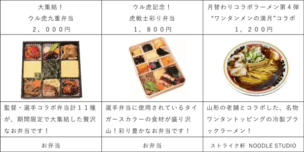 ※「大集結!ウル虎九重弁当」「ウル虎記念!虎戦士彩り弁当」につきましては、アクリルキーホルダー進呈対象外となります。