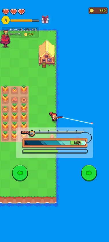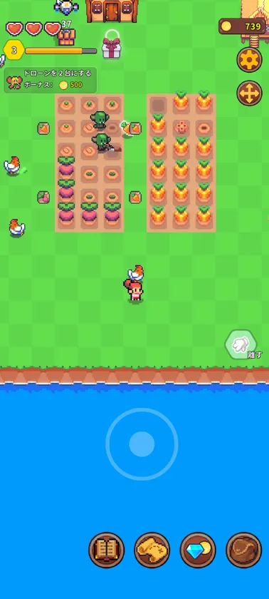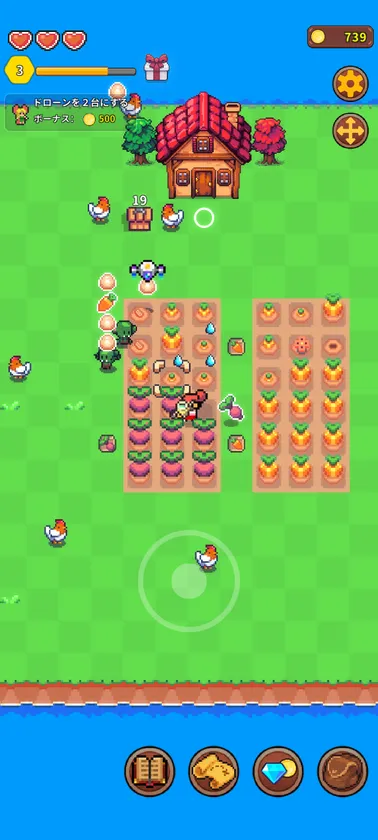 作物を売ってコインにすれば、なんと島の開拓ができるようになる。ちいさな牧場を大農園にしよう!