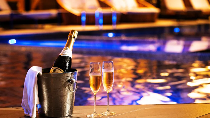 博多和牛も楽しめる鉄板焼きディナーや選べるサプライズ、さらに夕食後には、プールサイドでアフタードリンクと食後のオードブルを楽しみながら、二人だけのロマンチックな時間をお過ごしいただけます。