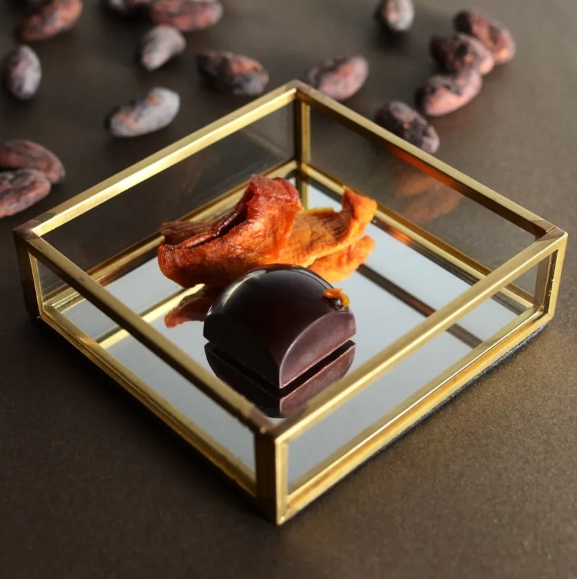 「カカオレート ドミニカ共和国(ラ・アルタグラシア産)素のままシグニチャー」をベースに、アールグレイとマンゴーピューレのガナッシュを組み合わせました。ドミニカ産カカオ豆の個性が、アールグレイの香りとマンゴーのフルーティさを際立たせています。