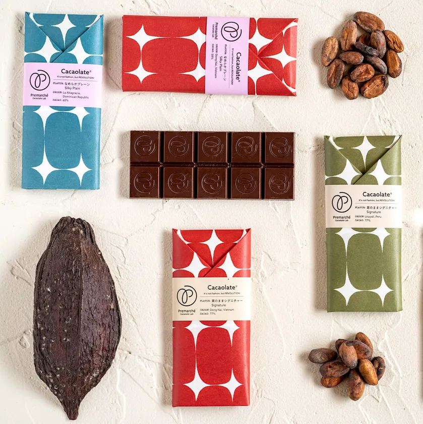 自然食の流通を手がけるプレマ株式会社が、2023年1月に開店。ベトナム(ドンナイ)、ドミニカ共和国(ラ・アルタグラシア)、ペルー共和国(ウカヤリ)のカカオ農家から直輸入したカカオ豆を使い、ビーントゥバーチョコレートの新しい形「カカオレート(R)」の製造・販売をおこなっています。商品はタブレットおよびボンボンのほか、店内ではカカオレート(R)を使ったスイーツやドリンクも提供しています。