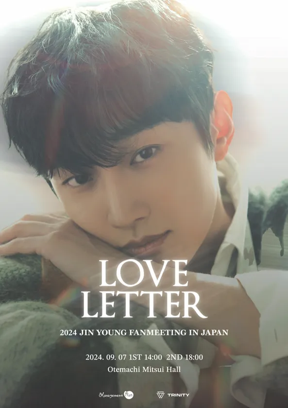 2024年9月7日(土)大手町三井ホール(東京)にて、「2024 JINYOUNG FANMEETING IN JAPAN」 ~Love Letter~の開催が決定。所属事務所であるMANAGEMENT RUNは「ジニョンが日本のファンの方々に早く会いたいという、日本のファンミーティングを確定した」という。