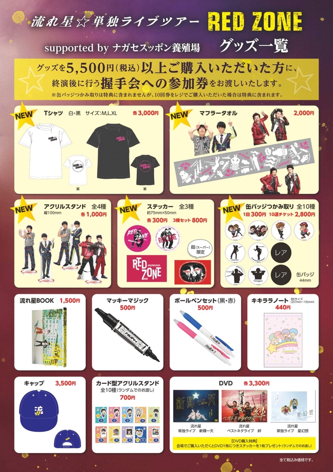「流れ星☆単独ライブツアー RED ZONE supported by ナガセスッポン養殖場」 まもなく開催!ツアーグッズ発表! さらにX(旧Twitter)にて「流れ星DVDココが好き」キャンペーン開催決定!