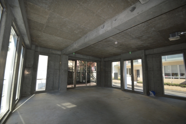 コンクリート打ちっぱなしのシンプルな空間に、外観もおしゃれな2020年造。全面コンクリートの重厚感のある躯体をそのまま活かして広々と使いたい。大きな窓からはにぎやかなキャットストリートを望むことができる。なお、今回紹介するのは2階部分だが、1階部分も募集中だ。
