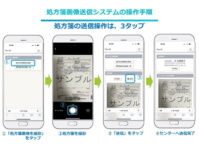 【薬局からリモートセンターへの処方箋送信画面(iPhoneの例)】