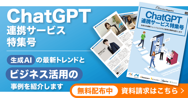 「ChatGPT連携サービス特集号」(PDF)をお求めの企業担当者様は、 以下お問い合わせフォームに必要事項記入の上、 お問い合わせ内容欄に「ChatGPT連携サービス特集号」希望と記載し送信ください。