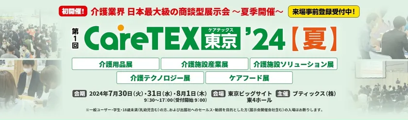 介護業界 日本最大級の商談型展示会 『CareTEX東京’24【夏】』に初出展 7月30日(火)・7月31日(水)・8月1日(木)の3日間、 ケアフードとしての「豆腐干」の可能性をブースで提案