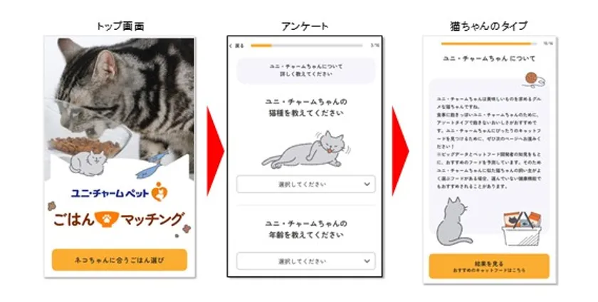 ユニ・チャーム株式会社(代表取締役 社長執行役員:高原 豪久)は、愛猫の食べ悩みの解決策として、AIを活用してキャットフードを提案する「ごはんマッチング」サービスを、2024年7月31日にユニ・チャームペットホームページで公開することをお知らせします。