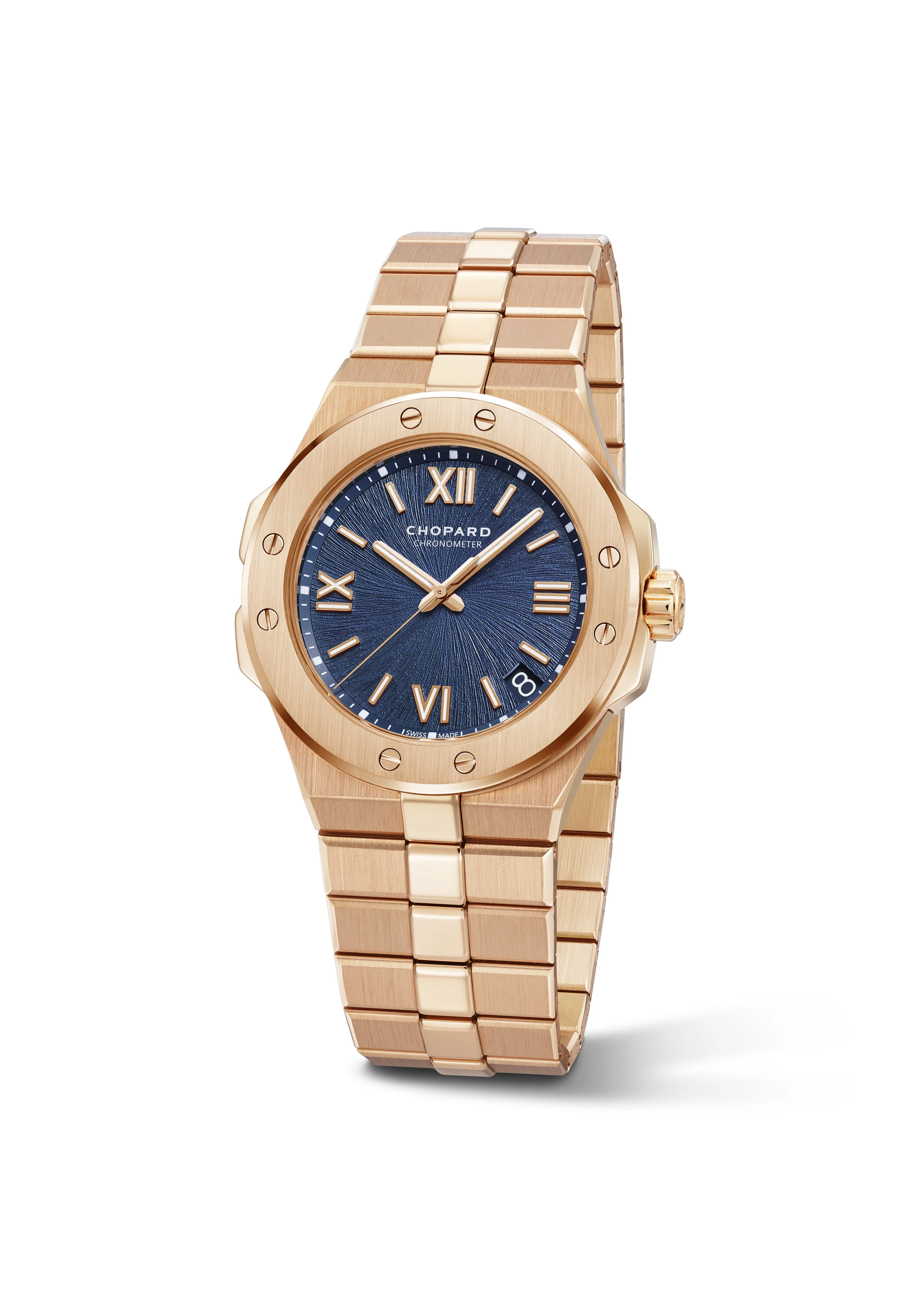 エシカルローズゴールド製ケース&ブレスレット、自動巻き、41mm径、アレッチブルー文字盤