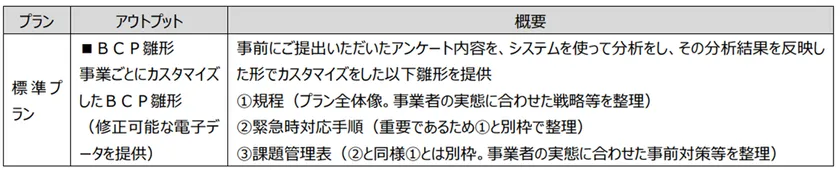(1)事業者ごとにカスタマイズされた「BCPの雛形」の提供