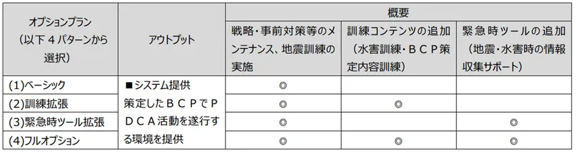 本サービスは、各事業者におけるBCPの「策定」と「育成」を、システムに力を使って、低廉な利用料でサポートすることで、地域の中堅・中小事業者におけるBCPの定着に貢献します。