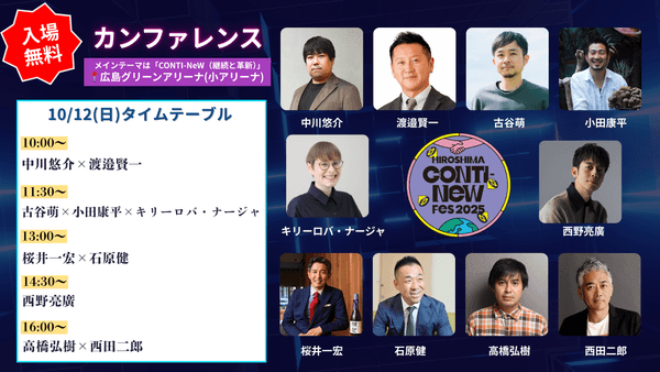 HIROSHIMA CONTI-NeW FeS 2025カンファレンス登壇者第三弾発表&タイムテーブル発表