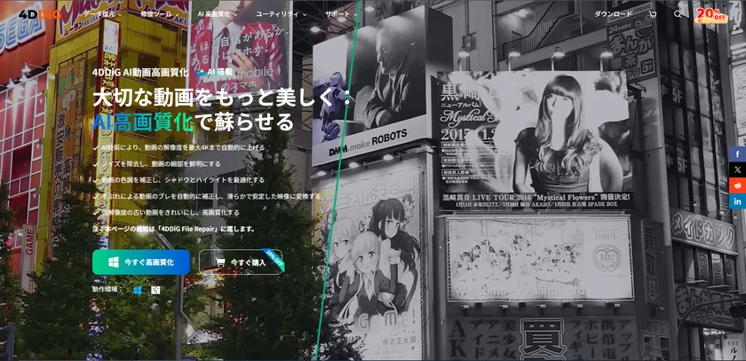 このアップデートを祝して、「動画高画質化」機能の専用新しいページ「4DDiG AI動画高画質化」も開設しました。動画の高画質化をお望みの皆様に向けたこのページでは、最新のAI技術を搭載した高画質化機能について詳しくご紹介しています。