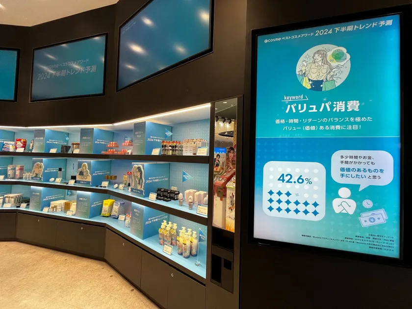 「@cosmeベストコスメアワード2024下半期トレンド予測」は、株式会社アイスタイルが企画する、@cosmeベストコスメアワードの関連企画です。@cosme内のクチコミやオンラインストアの@cosme STORE、実店舗である@cosme TOKYO、@cosme OSAKAでの売り上げ、アンケートなどの関連情報を基に分析した生活者の意識変化と、美容プラットフォーマーとしての知見から生活者インサイトや美容トレンドを予測するべく発足された「@cosmeトレンド予測部」によって、今後のトレンドがキーワード化されています。今年下半期予測の5つのキーワードのひとつが「バリュパ消費」です。