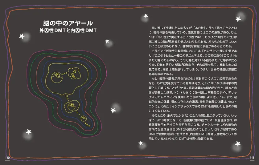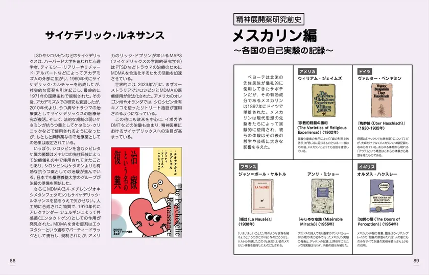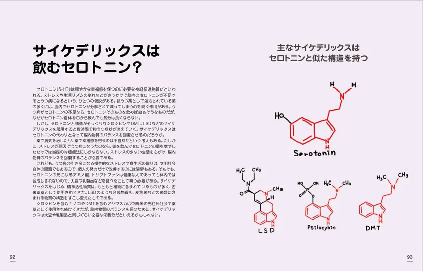 サイケデリックスとは、もともと世界各地の伝統社会で超自然界へ飛翔するために使われてきた植物に含まれるものです。本書は、その神秘に魅せられ、中南米やインドで20年以上もフィールドワークを重ねてきた人類学者による緻密な思索をまとめた1冊。構想から出版まで約2年。ついに完成したのは前代未聞のシュールな物語。人類学から西洋哲学、インド哲学、化学……など横断的な学術的見地に基づき、サイケデリックスの深淵なる世界を大胆かつユーモラスに描いています。サイケデリックスはいま、うつ病やトラウマ、不安障害、依存症などの特効薬としての可能性にスポットが当たり、欧米を中心にサイケデリックス研究のルネサンスが勃興。そして、ついに日本でも慶應義塾大学、名城大学、筑波大学、さらに大手製薬会社が手を組み精神疾患の治療薬としての研究・開発が急速に進められるようになりました。そんなサイケデリックスの新たな側面に興味がある方はもちろん、生きる意味とは、本当の幸せとは何か……といった人間の実存について哲学的な探究を続ける人にとっても示唆に富んだ書になっています。