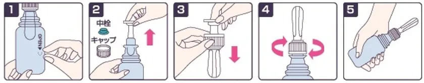 1. キャップと青い中栓を外し、ノズルを取り出します。