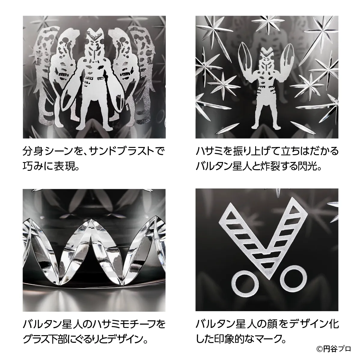 ■巨大なハサミ状の両手から光線を放ち、分身の術でかく乱する宇宙忍者バルタン星人。熟練職人の手による鋭い切子カットの技が冴えわたります。
