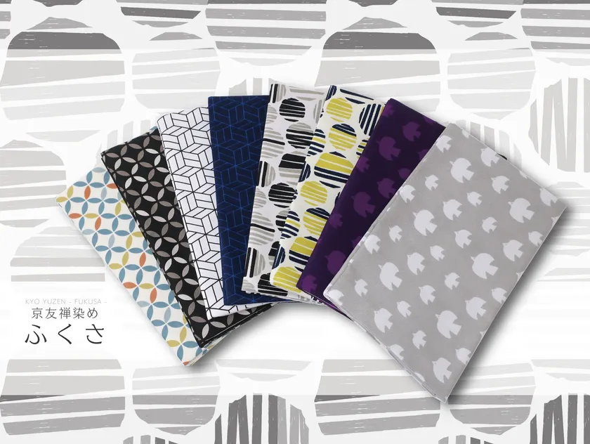 モダンであたたかな雰囲気の北欧テキスタイルと京都の伝統技術「京友禅染め」を融合させ、今までにないスタイリッシュさを表現しています。また、日本の伝統的文様とモダンな幾何学模様を組み合わせた柄を採用しました。