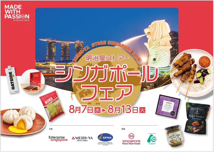 輸入食品などをそろえるスーパーマーケット「明治屋」と、シンガポール企業の発展を支援しているシンガポール政府機関シンガポール企業庁(Enterprise Singapore)およびシンガポール食品製造業協会(SFMA、Singapore Food Manufacturers’ Association)は共同で、8月7日(水)から8月13日(火)までの1週間、「明治屋ストアー」の都内2店舗(広尾・恵比寿)にて「シンガポールフェア2024」を開催いたします。