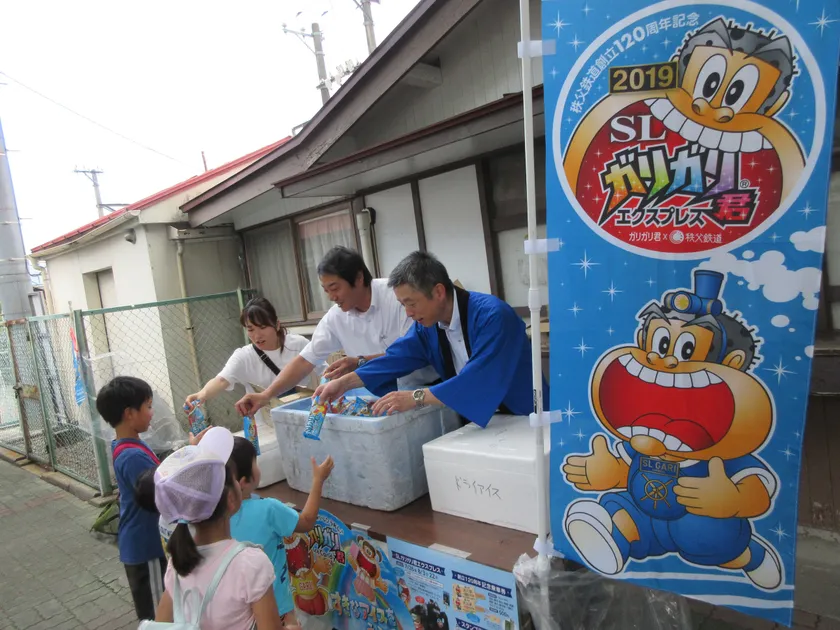 また、アイスバー型記念乗車券の販売や「ガリガリ君×秩父鉄道シールラリー」開催、ガリガリ君のぼり旗掲出、ガリガリ君スタンディ設置等で、イベントを盛り上げます。