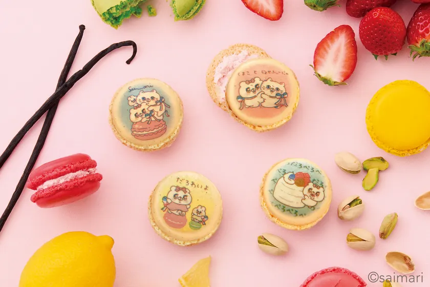 saimariさん描き下ろしのイラストを使用した期間限定パッケージに、ダロワイヨ人気のマカロンを2種類詰め合わせました。