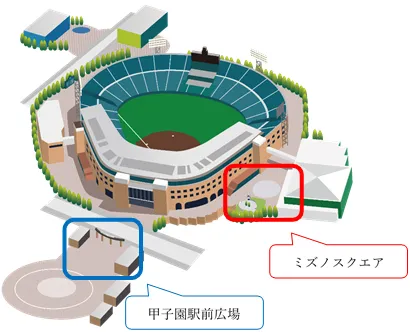 阪神甲子園球場外周1塁側ミズノスクエア、甲子園駅前広場