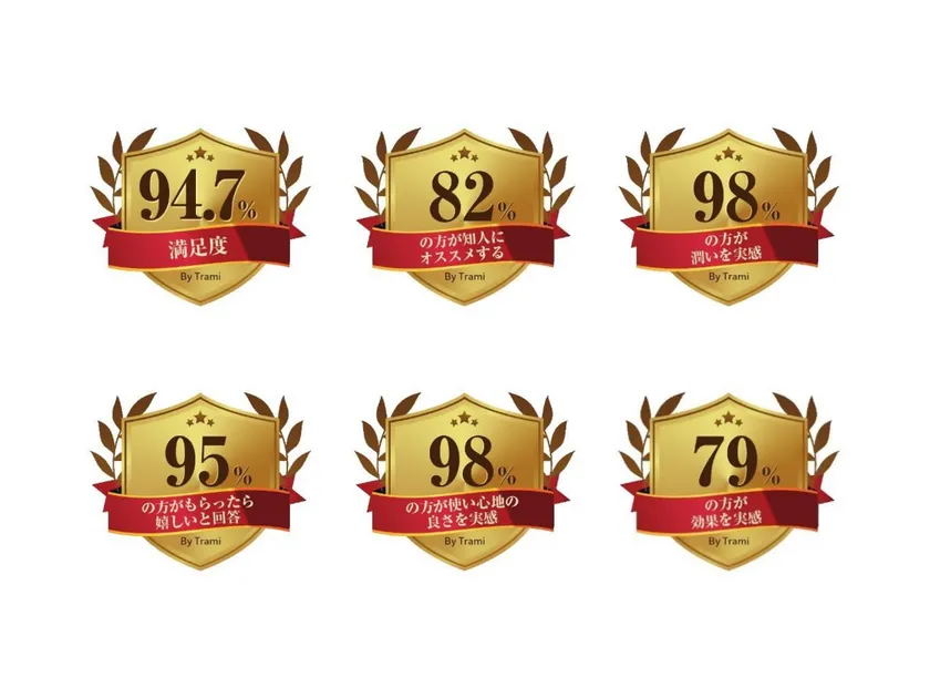 金子組のコスメ『押忍シリーズ』を使用した顧客に調査した結果、満足度94.7%、人にすすめたい度82%、うるおい実感98%など、確かな満足度が得られています。