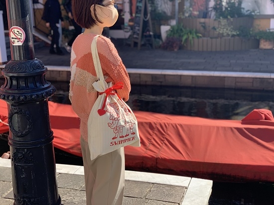 スイマーの巾着トートバックがすごいんです。なにかと荷物が増えがちな時にも役に立って、ペットボトルもすっぽり入る!そのうえ巾着のように上部が絞れるから中身もぽろぽろ飛び出さない。機能性抜群で可愛いスイマーの巾着トートバックをとりあえず見てください♪