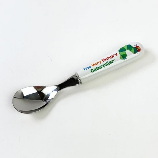 持ち手には、はらぺこあおむしが元気に歩いています。持ち手はお子様が握りやすいように太めのデザイン。先は小さめなので、お口の小さなお子様も食べやすいですよ♪