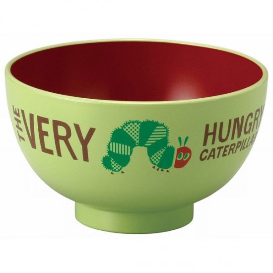 まずは上品さと和の雰囲気もある塗汁椀からご紹介。いつもはカラフルなイメージのはらぺこあおむしですが、こちらはマットなグリーンが優しげな印象ですね。
