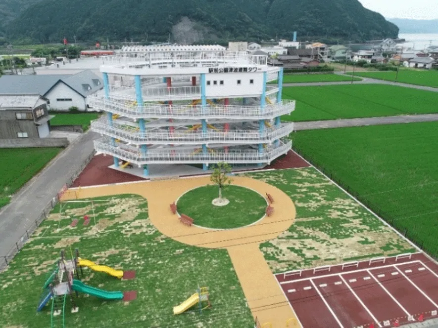 【宿毛市の駅前講演津波避難タワー】