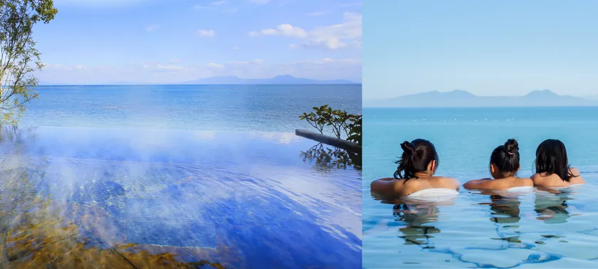 長崎県島原温泉ホテル南風楼の露天風呂「ととのいテラス」に 有明海を一望する海に浮かぶインフィニティ「立ち水」風呂が 2024年7月に男女ともに新登場!