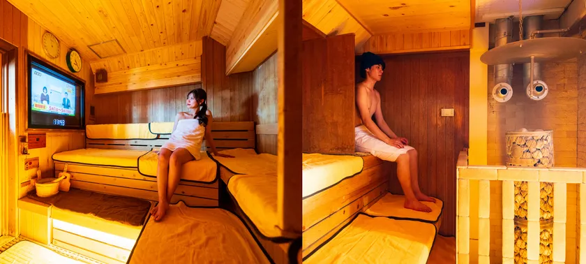・サウナ内は、湿度が高いことで「お肌」はもちろん、「喉」や「髪」に対しても優しい空間を実現、低めの温度設定(40℃前後)となっているため、暑いサウナが苦手な人でも大丈夫!