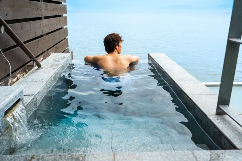 【海に浮かぶインフィニティ「立ち水」風呂】