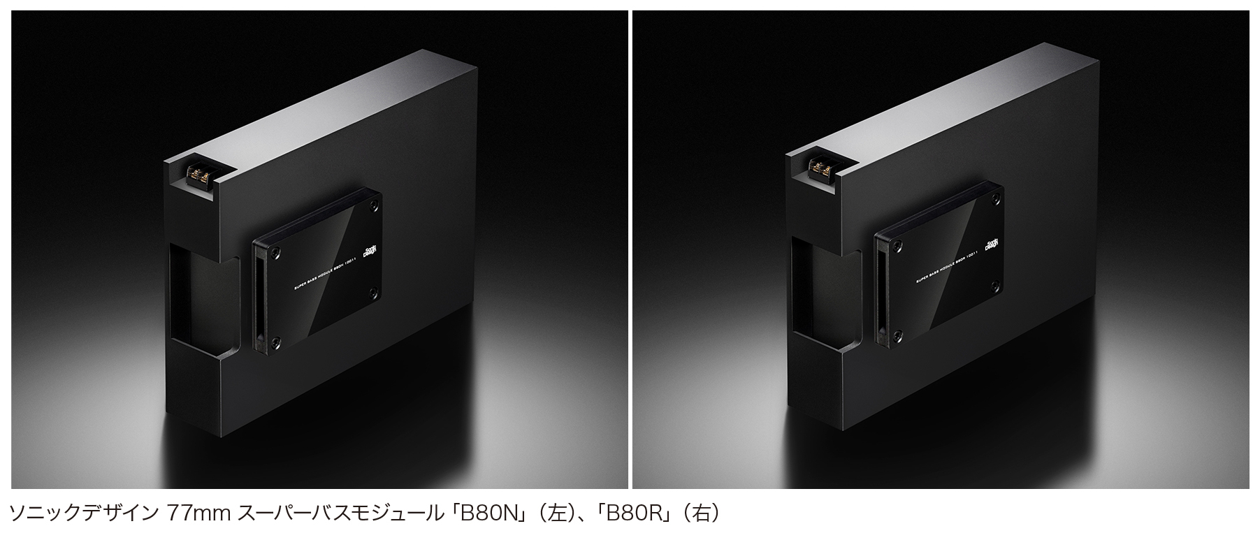 ソニックデザイン 77mmスーパーバスモジュール「B80N」(左)、「B80R」(右)ソニックデザイン 77mmスーパーバスモジュール「B80N」