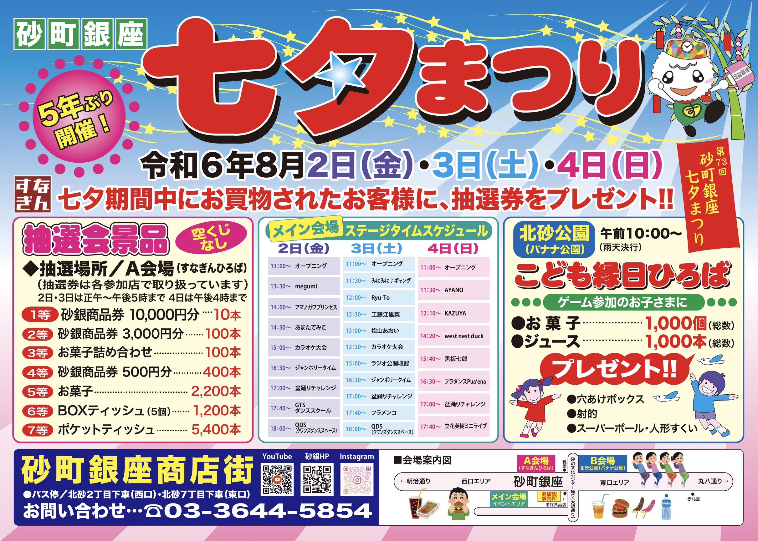 「第73回七夕まつり」が5年ぶりに砂町銀座商店街にて、令和6年8月2日(金)、3日(土)、4日(日)の3日間開催することをお知らせいたします。