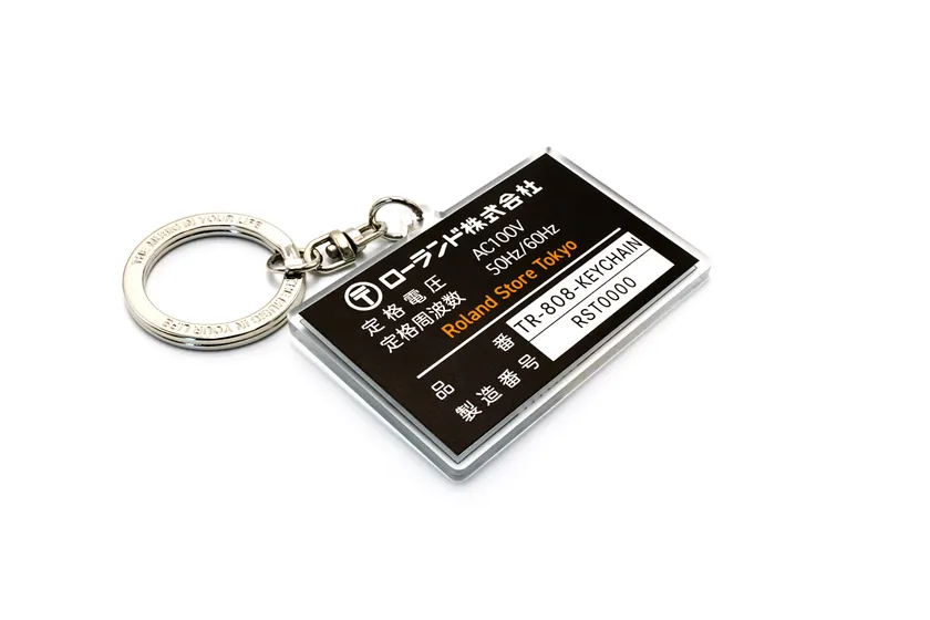 8月8日(木)~8月31日(土)にRoland Store Tokyoで税込5,000円以上お買い上げいただくと、オリジナルの「TR-808」デザイン・キーホルダーをプレゼント(先着150名限定)。キーホルダーには「TR-808」の銘板のデザインと、シリアル番号を印字。それぞれが、この世に1つしかないキーホルダーとなっています。