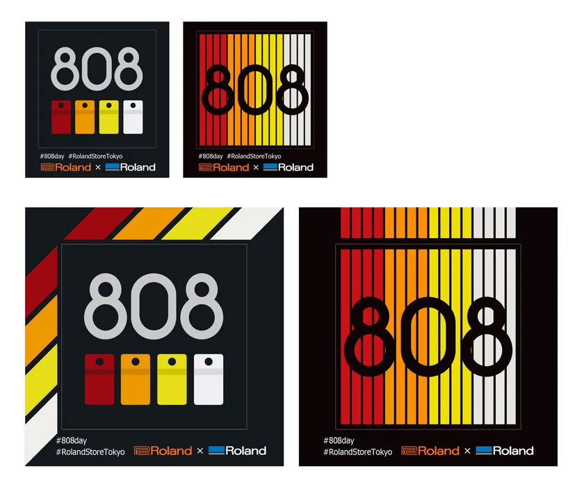 8月1日(木)~8月31日(土)にRoland Store Tokyoに来店いただき、SNSでハッシュタグ#808day、#rolandstoretokyoをつけてイベントの模様の写真を投稿いただくと、オリジナルの「TR-808」デザイン・ステッカー4種類のうちいずれかをプレゼント(数量限定)。