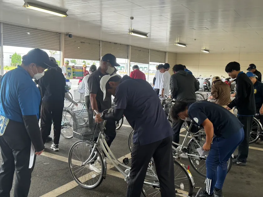 講演後は鹿児島県交通安全協会指導員による自転車運転の実技研修も行われました。ルールや自転車の車体自体の安全性についても改めて理解いただき、教職員の皆様が改めて自転車通学の安全指導について考える機会となりました。