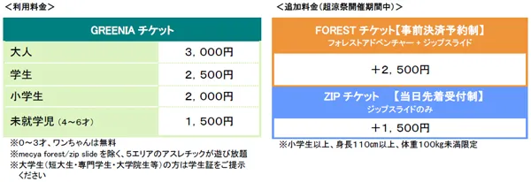 (別途入場料要・フォレストアドベンチャーおよびロングジップスライドは別途体験料要)