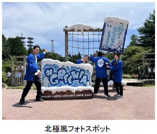 水上アスレチック付近にある体験型フォトスポットを北極風に限定リニューアル。冷たさ溢れる夏限定フォトスポットで夏の暑さを吹き飛ばす1枚が撮影できます。