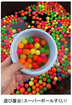 コマやボールを巧みに使った遊具や木製ストラックアウトなどお祭り気分が味わえます。