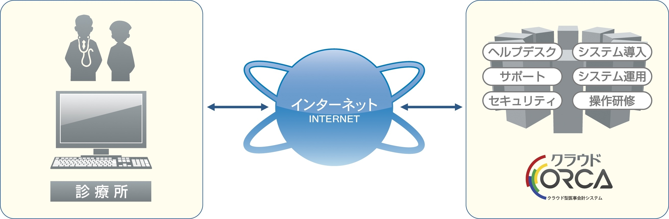 『クラウドORCA2』は、セキュリティ・システム・サポート・保守をトータルで提供し、医療機関様をシステム運用にかかる負担やリスクから開放するフルラインのサービスです。