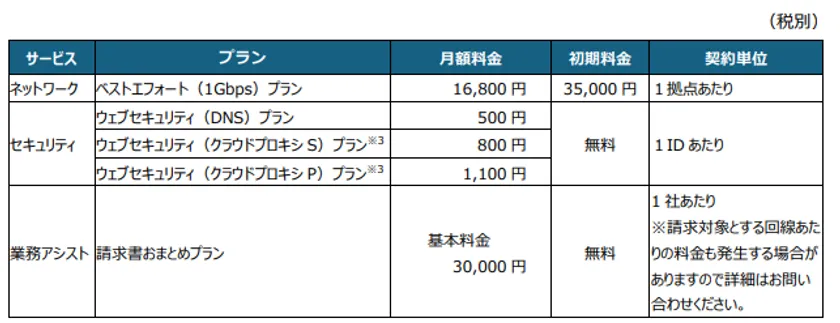 ※ 新たに開発したダッシュボードでは、ネットワーク、セキュリティ、業務アシストなどのサービスプランを統合的に管理し、サービスプランの申し込みから、契約内容、拠点の通信状況、セキュリティポリシーの設定、請求情報の確認、請求書の保管などができます。(画面イメージは別紙参照)