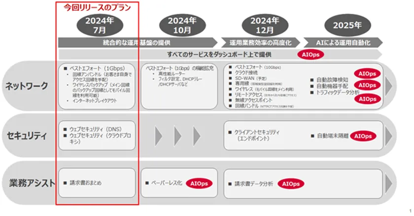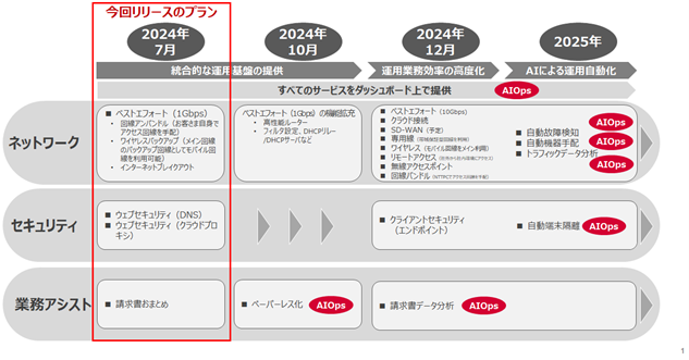 「Prime ConnectONE(TM)」は今後も段階的にサービスの充実を図り、10月、12月に機能拡充を予定しています。また2025年にはAIOps活用をさらに推進することで運用自動化の範囲を拡大し、お客さまの「攻めのDX」の実現に貢献します。